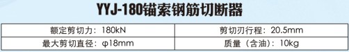 用途: YYJ-180錨索鋼筋切斷器用于配套MSl5-180/63手動礦用錨索張拉機具、MQ15-180/63手動礦用錨索張拉機具的切斷鋼絲繩、電纜、鋼筋等。它具有結構簡單可靠、操作方便、切斷快、重量輕等優點,是提高工作效率的有力助手。