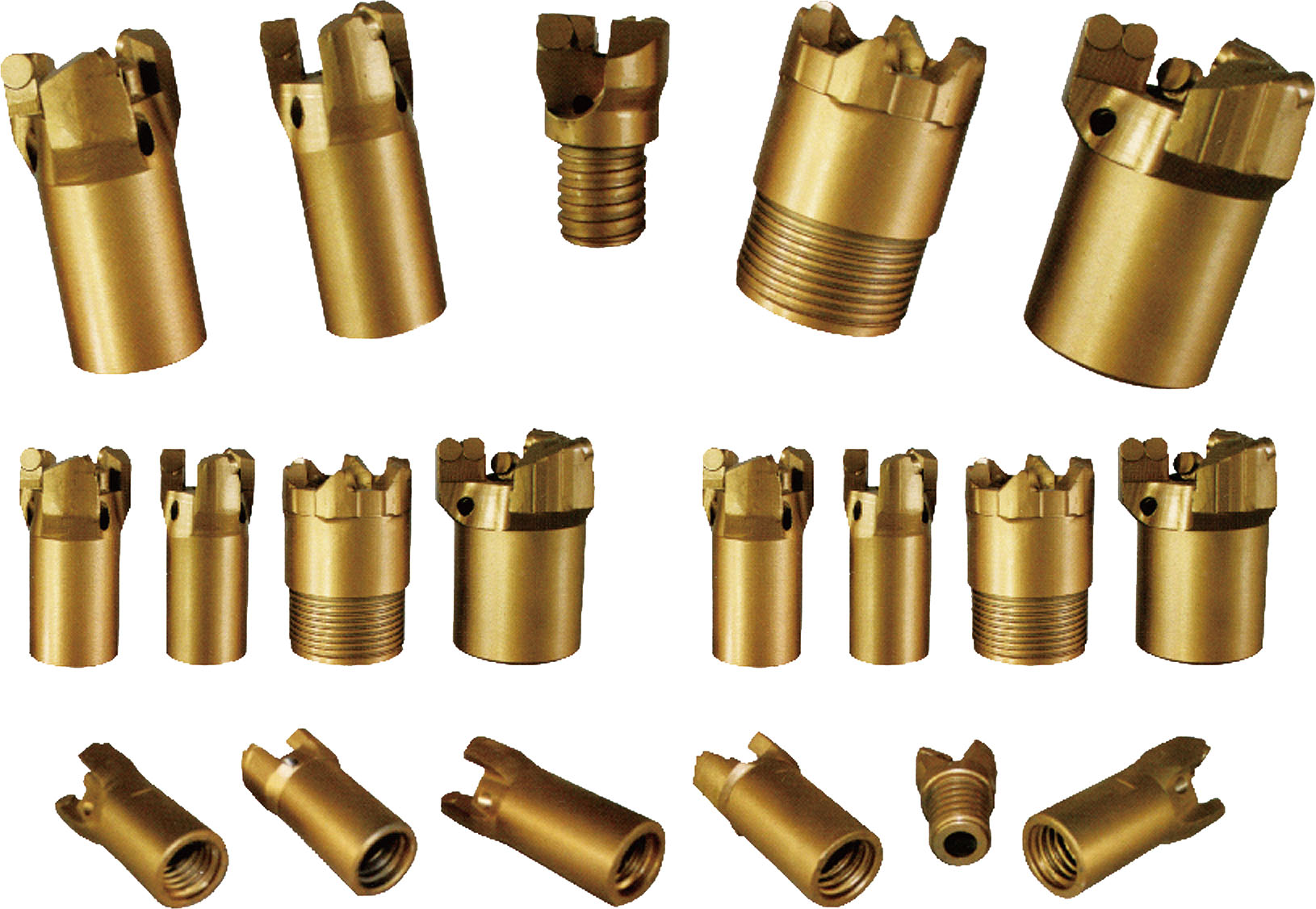 金剛石復(fù)合片(PDC)是在高溫條件下,由人造金剛石與硬質(zhì)合金一次性合成的特殊超硬材料,它不但具有金剛石硬度高、耐磨等優(yōu)點(diǎn),同時(shí)還具備了合金抗沖擊性強(qiáng)、出刃大等特點(diǎn),用它做鉆頭的刀翼可大大提高鉆頭的工作效率,是鉆進(jìn)中硬巖層和堅(jiān)硬巖層的理想鉆頭。我公司生產(chǎn)的金剛復(fù)合片鉆頭主要類別有:金剛石錨桿鉆頭、金剛石內(nèi)凹鉆頭(金剛石無(wú)芯鉆頭)、金剛石取芯鉆頭、金剛石刮刀鉆頭、金剛石擴(kuò)孔鉆頭;當(dāng)前,我公司生產(chǎn)的金剛石復(fù)合片鉆頭遍布全國(guó)煤田、地質(zhì)勘探等行業(yè)。