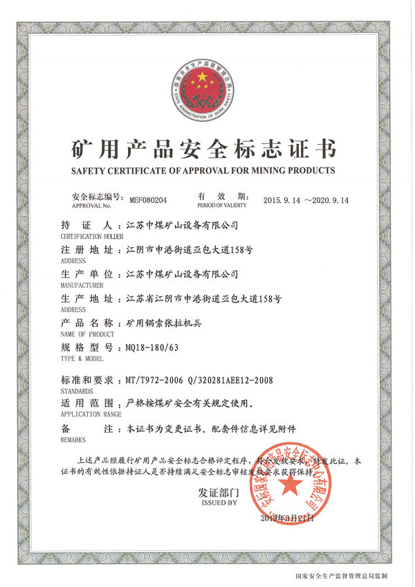MQ15(18)-180/63礦用錨索張拉機具利用壓縮空氣作為氣動齒輪馬達的動力源帶動油泵總成工作輸出高達63MPa液壓油供給張拉千斤頂。適用于安全要求所必須的場合,如具有爆炸性瓦斯的煤礦井下作業。總體結構緊湊、體積小、重量輕、運轉平穩、壓力波動小等特點,是煤礦井下進行錨索支護的設備,使用它可顯著提高煤礦錨索支護的效率、質量和作業安全性。也可用于其他行業做壓力油供給設備。
