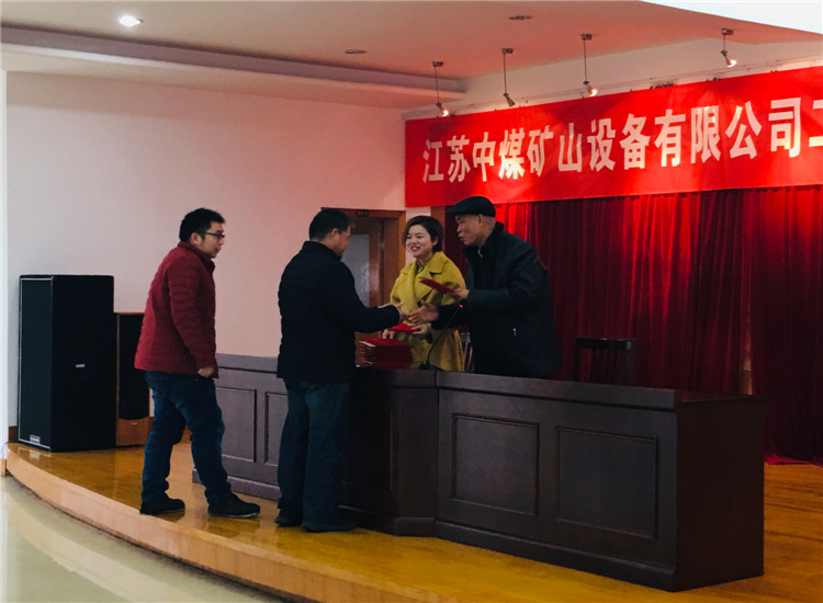 2019年2月14日上午9點,江蘇中煤礦山設備有限公司隆重召開了2018年度總結表彰大會。會上總裁黃文娟宣讀了2018年度表彰決定和先進員工名單,并頒發了榮譽證書及獎金。號召公司全體員工要以科學發展觀統領全局,以先進模范為榜樣,弘揚奉獻精神。解放思想、與時俱進、開拓創新、奮勇爭先、扎實工作、再創輝煌。