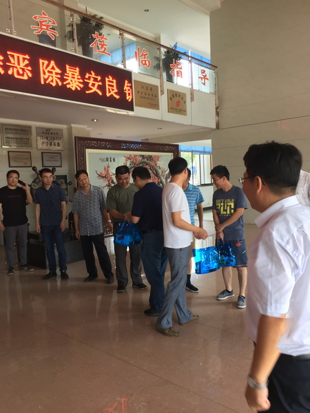 烈日炎炎,驕陽似火,申港的最高氣溫一直持續在38℃以上。2019年7月30日上午,申港街道葉海舟主任等一行領導,對我公司一線工人進行了高溫慰問,給炎熱的酷暑送來了一絲清涼。葉主任與工人代表一一握手并送上防暑降溫用品,對不畏酷暑,仍然堅持在一線的員工表示高度贊賞,并對公司作出了工作指示:在做好工作的同時也要注意人身安全,做好防暑降溫工作,平安度夏。