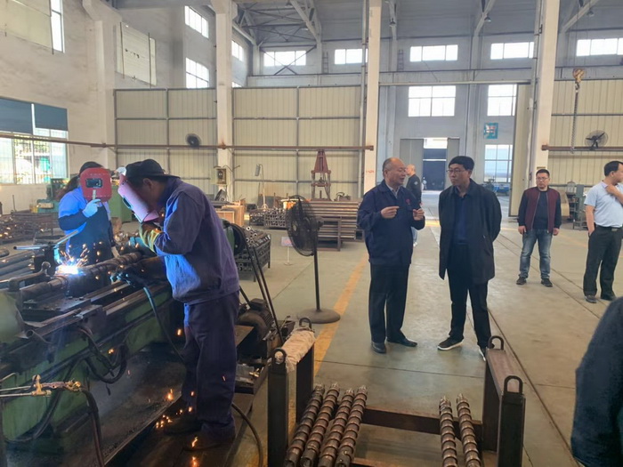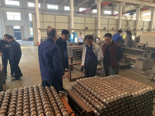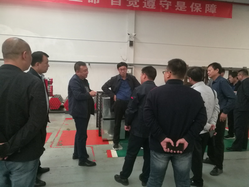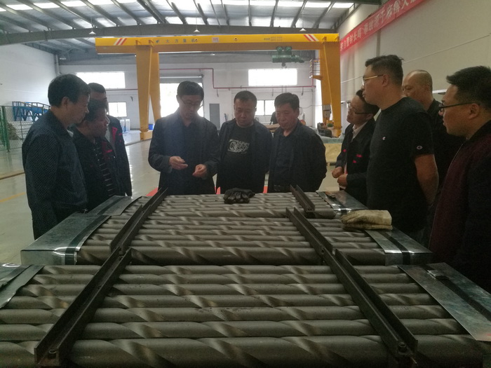 考察期間,龍煤集團領導參觀了千米定向鉆機生產基地,我司副總裁詳細匯報了公司千米定向鉆機的運行原理、技術先進性、產品推廣現狀及國內市場前景等。期間,領導就鉆機主體配置、隨鉆測量系統分析、定向打鉆工藝等問題仔細尋問,公司技術負責人都一一解答。